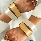 Make a bold statement with the Athena Bangles. These bangles effortlessly combine modern artistry with classic sophistication. Perfect for elevating both casual and formal looks.