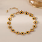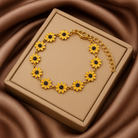 A delicate jewelry set crafted with polished gold-tone metal and enamel-detailed daisy charms. Each piece sits lightly on the skin, offering a bright, refined touch that feels both playful and elegant. The smooth finish and clean detailing give it a premium feel without overdoing it. Simple, charming, and easy to pair with anything.