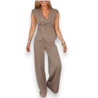 The Olivia set pairs a chic V-neck top with tailored trousers for a look that balances comfort and polish. The top features short sleeves, an asymmetrical hem that drapes naturally, and gold-tone side buttons that accentuate the waist. The coordinating trousers offer an easy, relaxed fit that moves with you yet always looks put-together—ideal for day-to-night versatility.