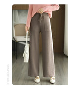 These 100% wool pants are incredibly soft and comfortable. The relaxed wide-leg fit looks very elegant and makes these perfect for lounging at home or casual outings.