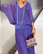 ✅Flattering Fit for All Body Types: The relaxed fit and flowy design make this set a flattering choice for all body shapes and sizes. The draped fabric gracefully enhances your silhouette without clinging, creating a balanced and elegant look. Whether worn loose for a laid-back feel or cinched with a belt for added definition, this set complements your natural beauty.