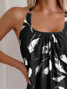 Elise | Black & White Leaf Print Tankini Set