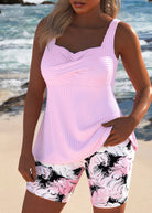 The Keira Tankini Set brings a graceful twist to your swimwear collection. With its light pink surplice top and feather-patterned shorts, this set blends flattering design with breezy comfort — perfect for beach walks, poolside lounging, or relaxed summer days.