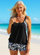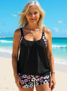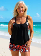 The Amaya Tankini Set blends playful floral prints with a sporty colorblock design – giving you a swimsuit that’s as flattering as it is fun. The round-neck top smooths lightly over the tummy and hips, while the boxer short bottoms add coverage and freedom to move. Perfect for women who want comfort, confidence, and a little extra style by the water.