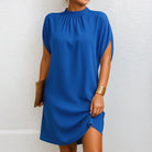Designed with a relaxed fit, the dress allows for effortless movement while maintaining an elegant shape. The soft satin drape enhances the body’s natural lines without clinging, making it both flattering and comfortable. The discreet side slit adds a modern touch, balancing refinement with a hint of allure.